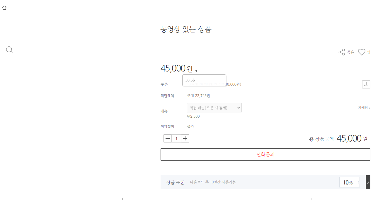 ※ 구매 버튼 제한 설정 화면(가격은 노출되나 버튼 위치에 문구 노출)