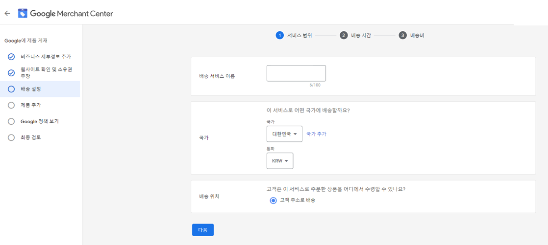 6. 운영 중인 사이트의 배송 정책과 일치하도록 배송 설정을 진행합니다.