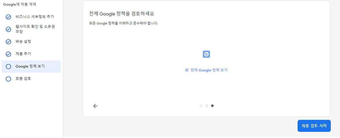 10. 구글 정책에 위반되는 내용은 없는지 정책을 확인합니다.