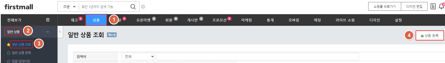 '상품 > 일반 상품 > 일반 상품 조회'에서 상품 빠른 등록을 통해 등록한 상품의 세부내용을 작성하여 상품등록을 완료합니다.