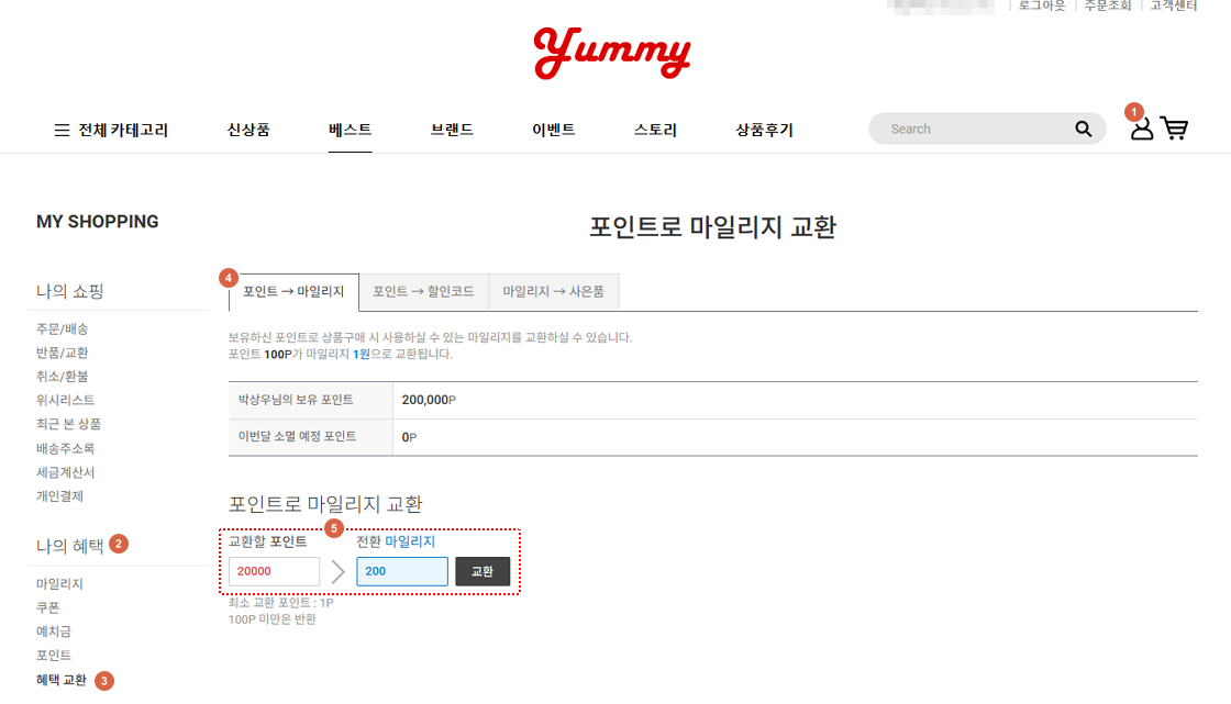 ※ 쇼핑몰 고객은 'MY쇼핑 > 나의 혜택 > 혜택 교환 > 포인트 → 마일리지'에서 교환할 수 있습니다.