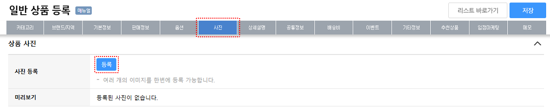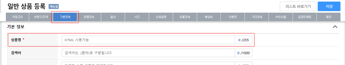 ■ 필수 항목: 상품명, 재고, 판매가, 상품 사진, 상세 설명, 상품 공통 정보 등