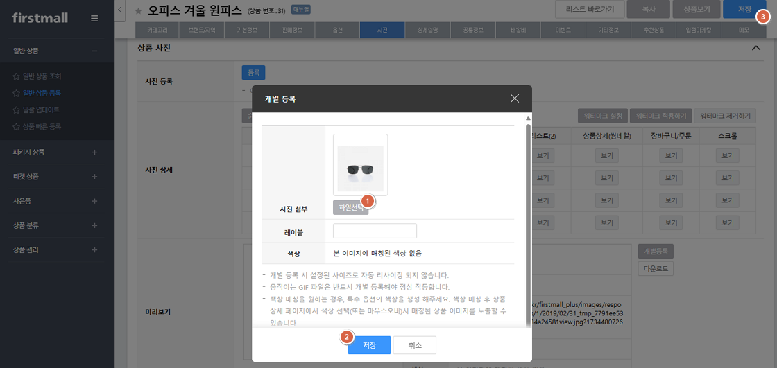 3. '파일선택'을 클릭하여 이미지를 업로드하고 '저장'합니다.