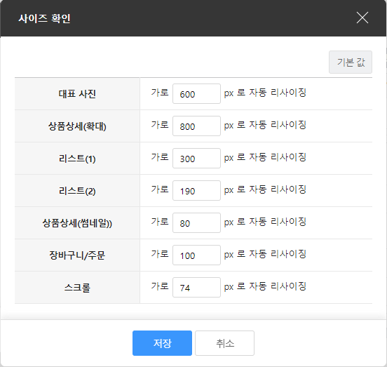 다만, 기존 등록된 이미지의 경우 이전 이미지 크기로 리사이징되어 저장되어 있으므로 설정값에 따라 이미지 해상도가 저하될 수 있습니다.