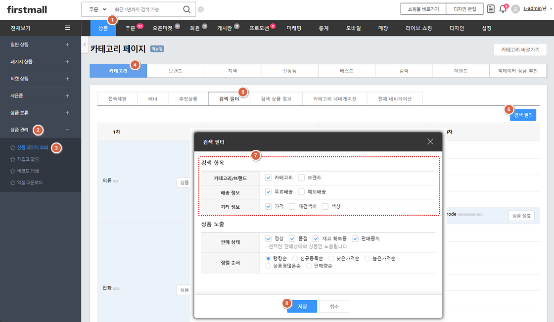상품 > 상품 관리 > 상품 페이지 조회 > 카테고리 > 검색 필터