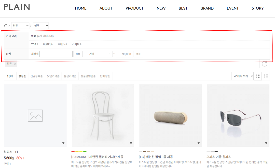 상품 카테고리 검색영역 추가