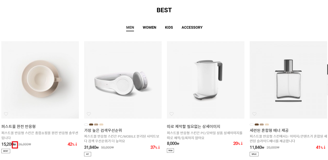 반응형 스킨을 이용할 경우에는 1번 항목 설정 시 상품리스트 페이지도 동일하게 적용됩니다.