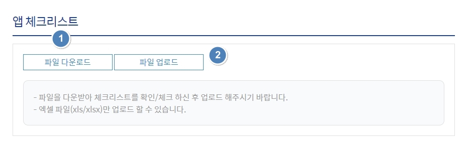 1) 앱 등록을 위해서는 '파일 다운로드'를 클릭하여 엑셀파일을 다운받아 내용 확인 후
