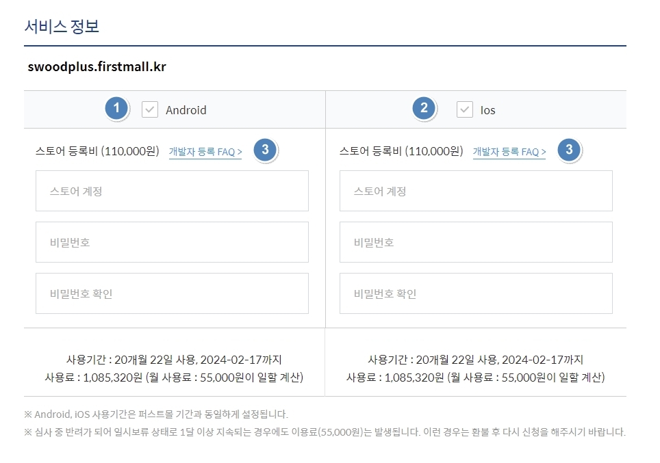 2. 쇼핑몰앱 제작 신청 - 서비스 정보