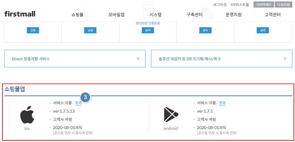 1. 쇼핑몰 앱 정보는 MY퍼스트몰에서 신청할 수 있습니다.