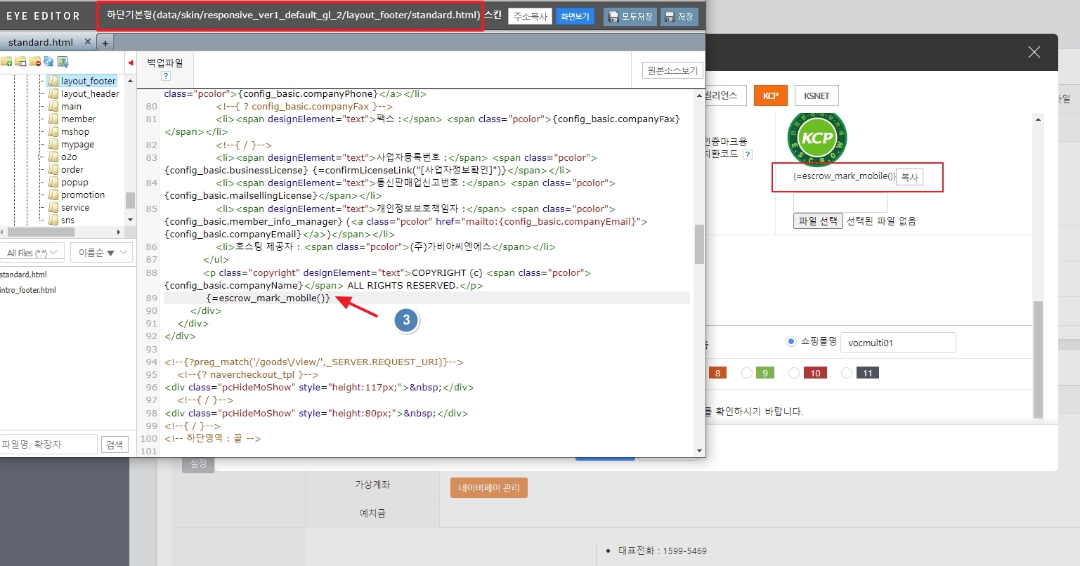 3. 복사한 에스크로 인증마크 치환코드는