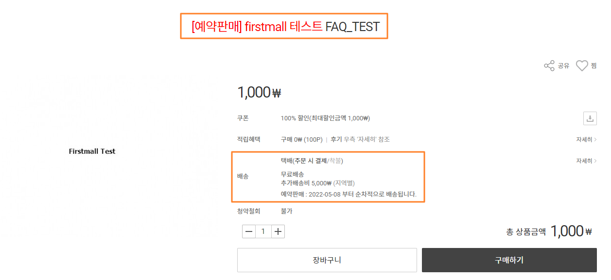 ※ 예약상품 노출로 설정된 상품은 하기와 같이 노출됩니다.