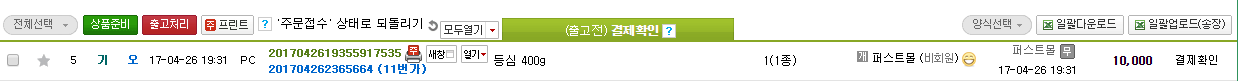 오픈마켓 주문서의 경우 오픈마켓 > 주문수집/등록 메뉴를 통해 주문수집등록된 주문서에 한해서만 주문 > 전체주문조회에서 출고 처리 가능합니다.