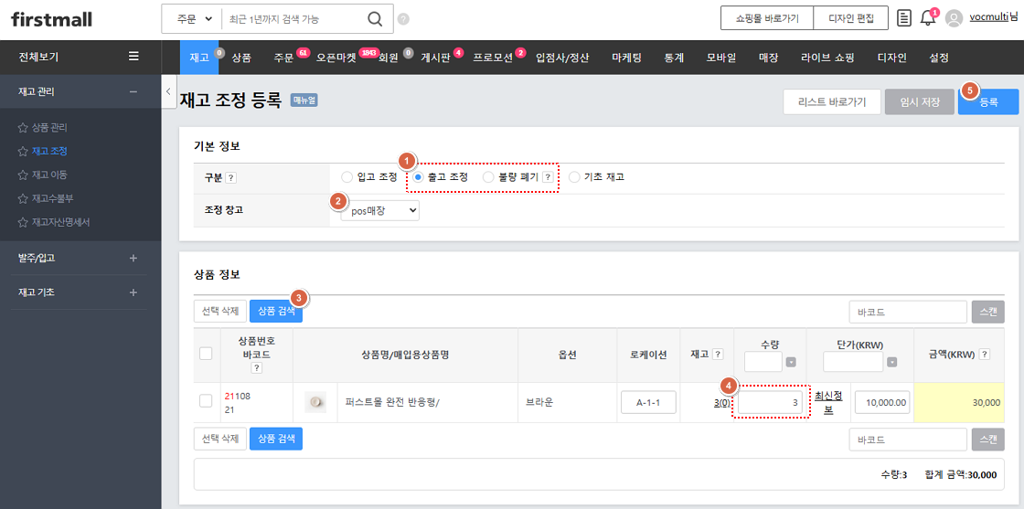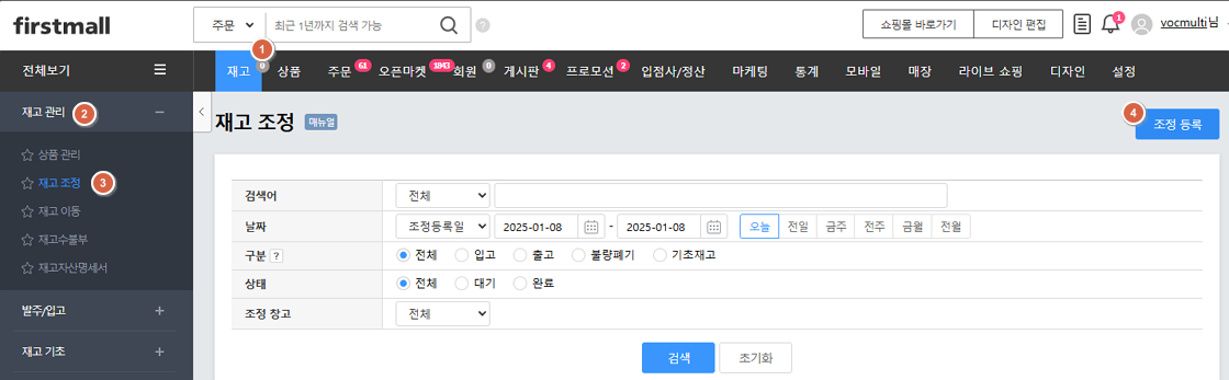 ■ 재고 조정: 상품을 재고를 임의 변경할 수 있습니다.