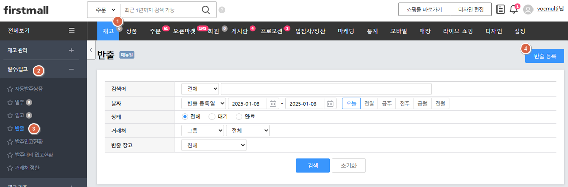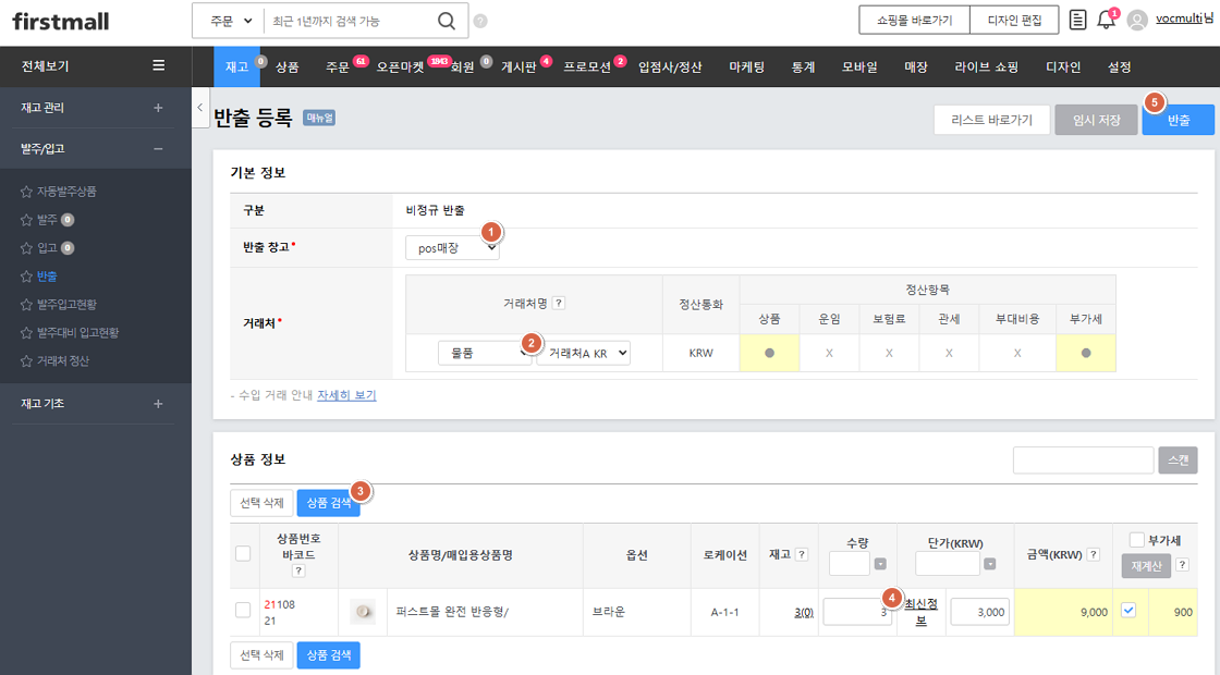 ■ 반출: 상품을 구매한 거래처에 반출하여 재고를 조정할 수 있습니다.