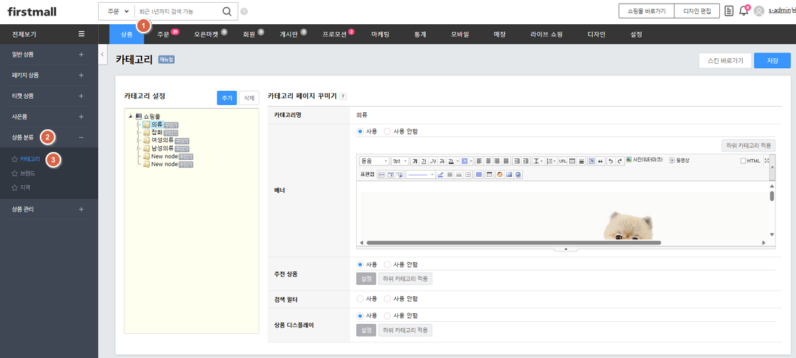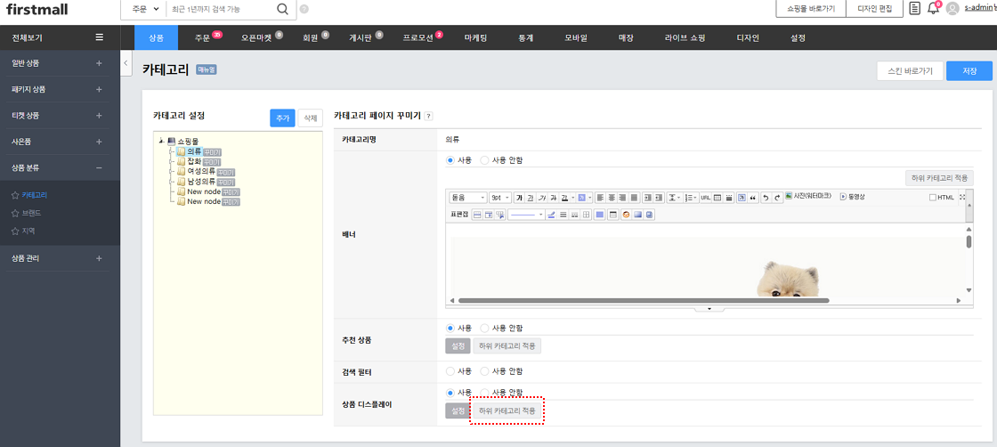1. '상품 > 상품 분류 > 카테고리'로 접속합니다.