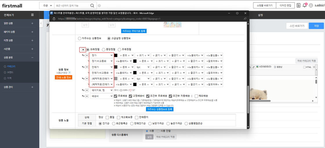 상품을 카테고리에 등록하셨을 때, 가격 등의 정보가 나오지 않으면 아래와 같이 세팅하면 됩니다.