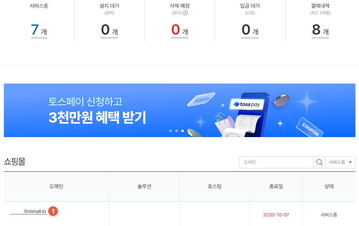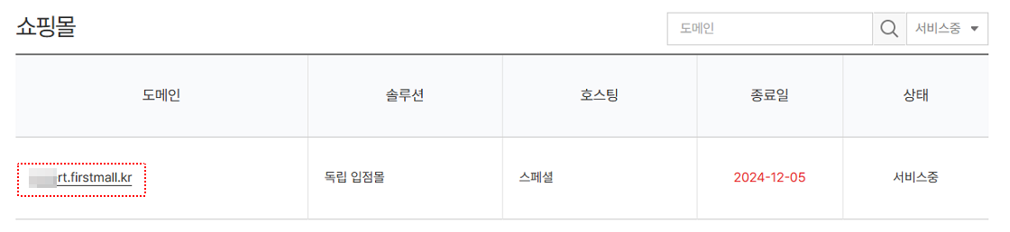 2. 추가할 퍼스트몰의 '도메인'을 클릭합니다.