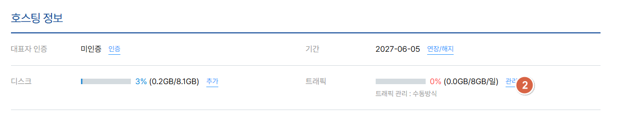 3. 호스팅 정보 트래픽의 '관리'를 클릭합니다.