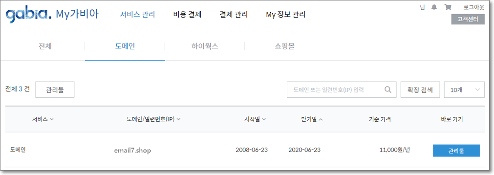 ※ 등록이 완료되면 가비아 홈페이지↗ 'MY가비아'에서 등록된 도메인을 확인 및 관리할 수 있습니다.