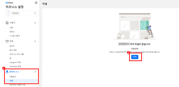 3. '데이터 소스 > 픽셀'에서 '추가'를 클릭합니다.