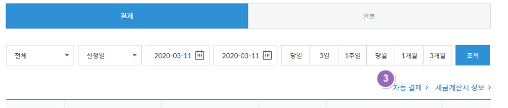 2. '자동 결제'를 클릭하여 신용카드를 등록합니다. (클라우드 서비스는 후불결제이기 때문에 자동결제될 신용카드를 등록하여야 합니다.)