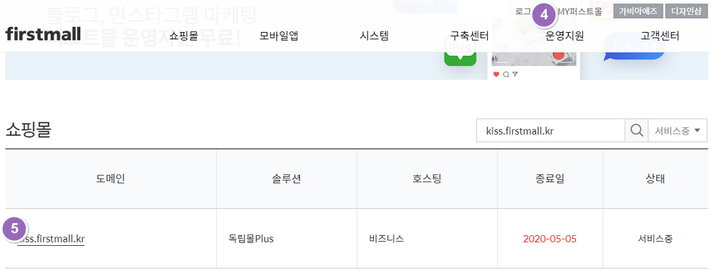 3. 'MY퍼스트몰'로 돌아가서 클라우드로 변경할 도메인을 클릭합니다.