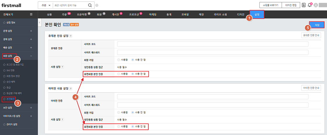 3) 본인 인증 시 해제 ('설정 > 회원 설정 > 본인 확인'설정 필요)