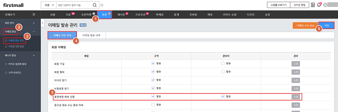 1. '설정 > 회원설정 > 회원 정보 변경 > 휴면 처리'에서 변경 후 저장합니다.
