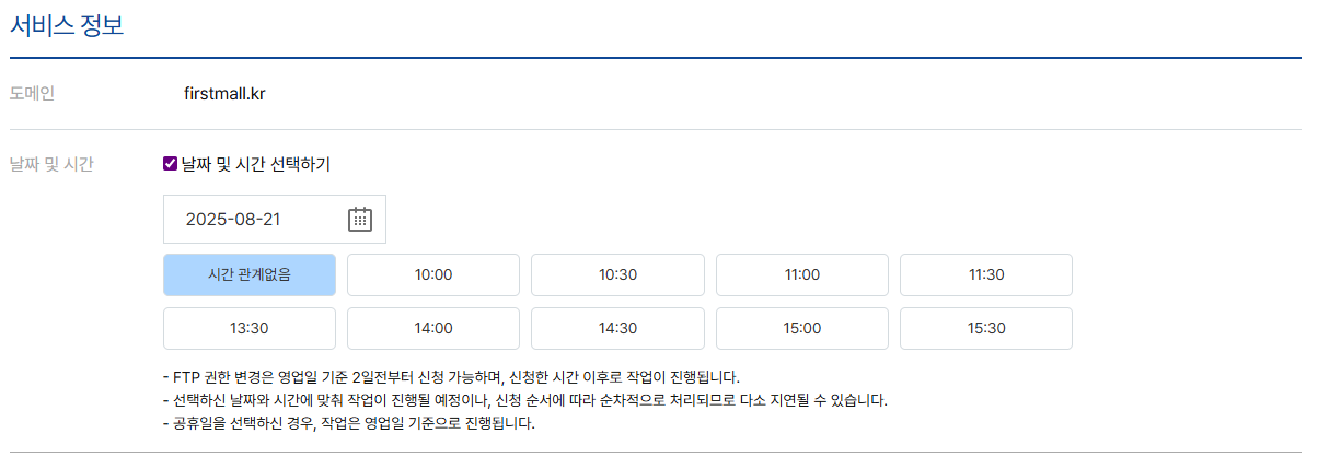서비스 정보의 날짜 및 시간을 선택합니다.