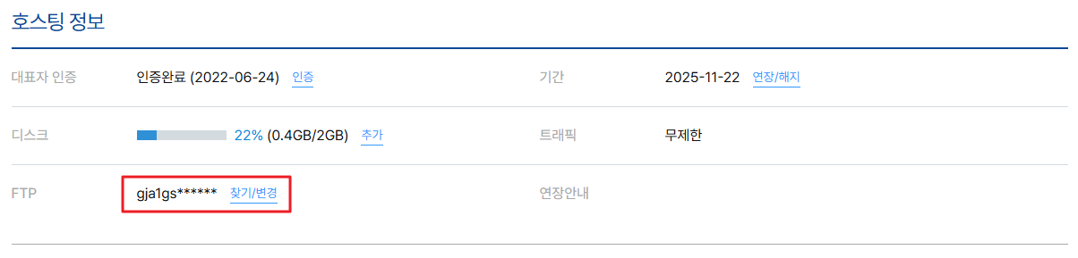 FTP 접속정보 확인은 우측 목록의 'FTP 접속정보 확인' 을 클릭하여 참조해주세요