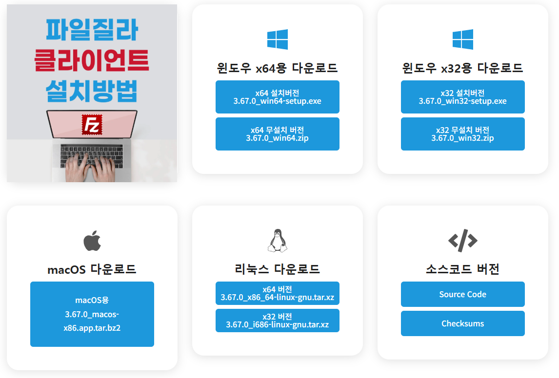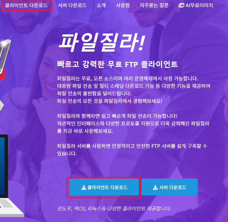다운로드 링크로 접속 후, 사용 중인 OS 환경에 맞는 클라이언트를 다운로드 합니다.
