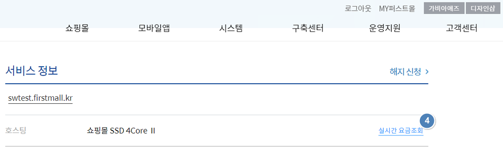 사용중인 클라우드 서비스의 실시간 요금은 MY퍼스트몰에서 확인하실 수 있습니다.