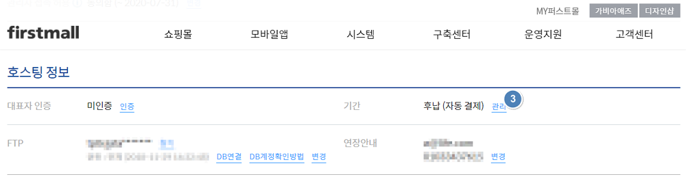 2. 호스팅 정보에서 기간의 '관리'를 클릭합니다.